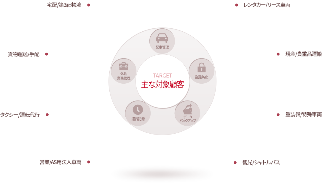 多数の車両の現在位置+車両運行状態を同時に把握し、効率的な配車管理可能 → 車両維持費の低減