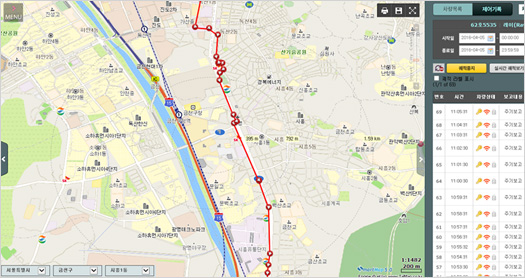 - 전체 차량의 운행현황을 이미지 맵 상에서 한눈에 확인 가능