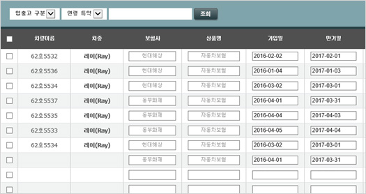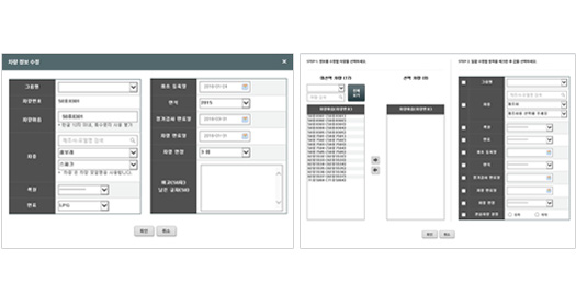 - 개별차량 및 선택차량 정보 일괄 등록/수정