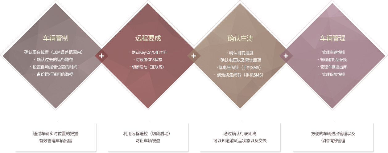 车辆管制服务和消耗品管理,车辆进出口管理,保险情报管理等Ubikhan R的车辆管理服务是并行PC和手机系统,针对租车管理,提供最优化的各种管制方案