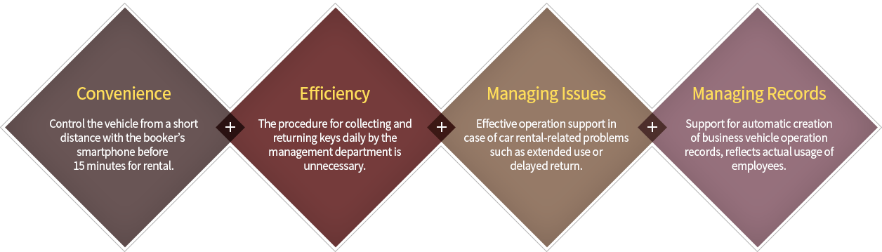 BIZFLEET is a service that integrates key functions necessary for efficient business vehicle management and sharing based on UMOS ONE unique experience and know-how.