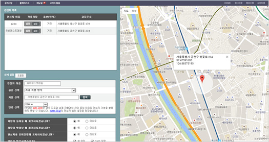 - 10m ~ 10Km까지 원형으로 설정 or 읍/면/동 단위 행정구역 설정 → 차량 도난 방지