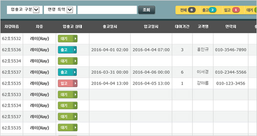 - 차량의 입출고 내역을 온라인 상에서 관리하여 차량 대여 현황을 한눈에 파악