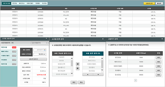 - 소모품 항목 및 교환 주기 관리 기능 제공