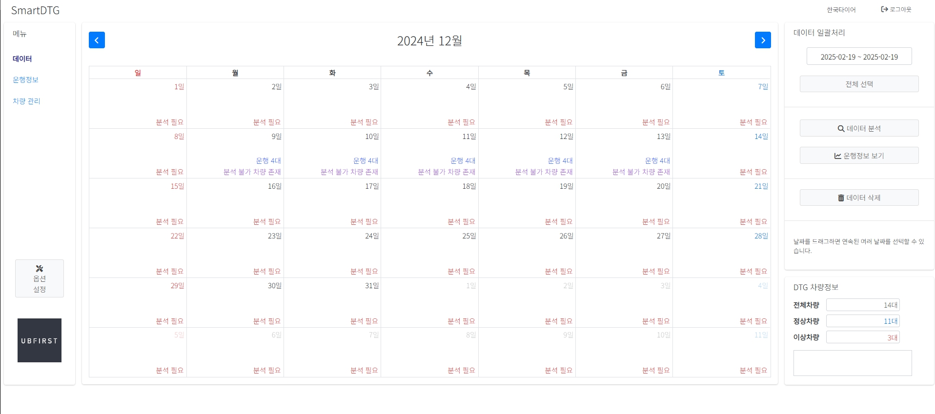 - 운행 데이터 다운로드 기능, 데이터 삭제 기능, 공단 제출 파일 생성 기능을 제공