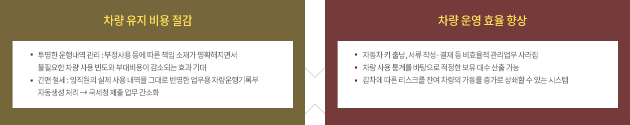비즈플릿은 유모스원만의 경험과 노하우를 바탕으로 효율적인 업무용 차량관리와 공유에 필요한 핵심 기능을 통합한 서비스입니다.